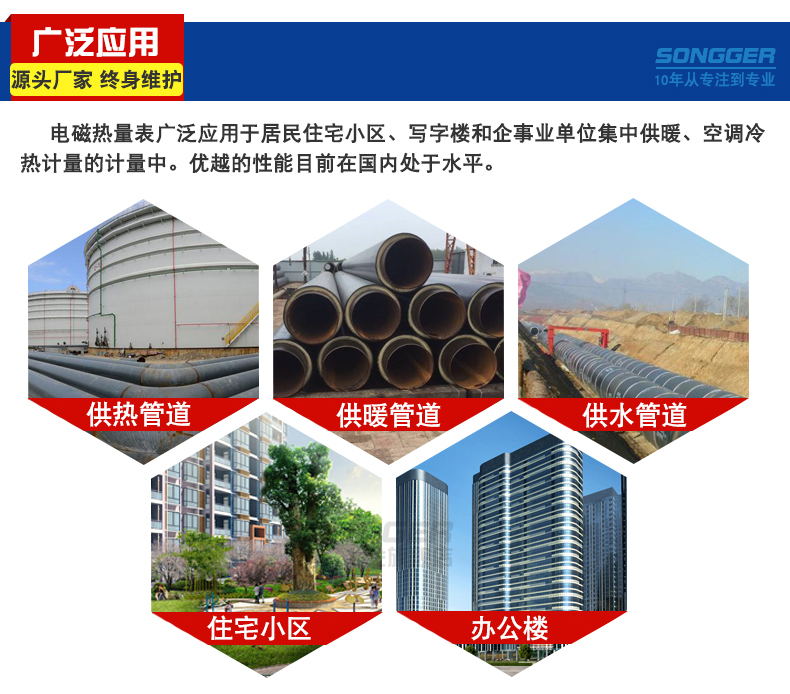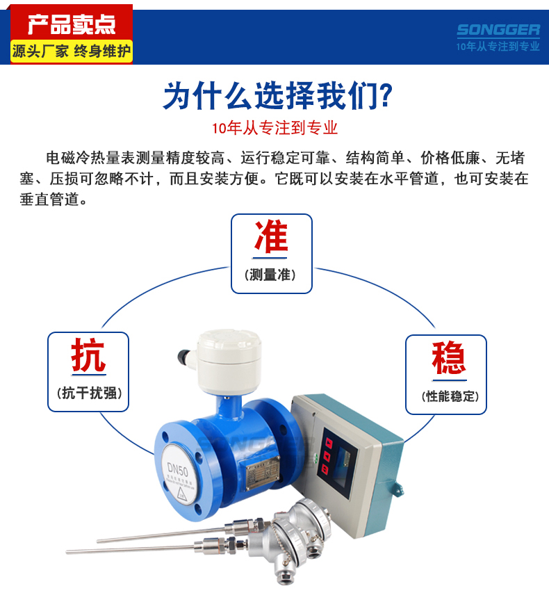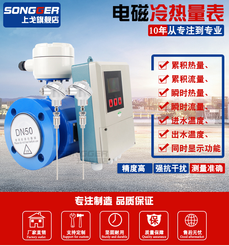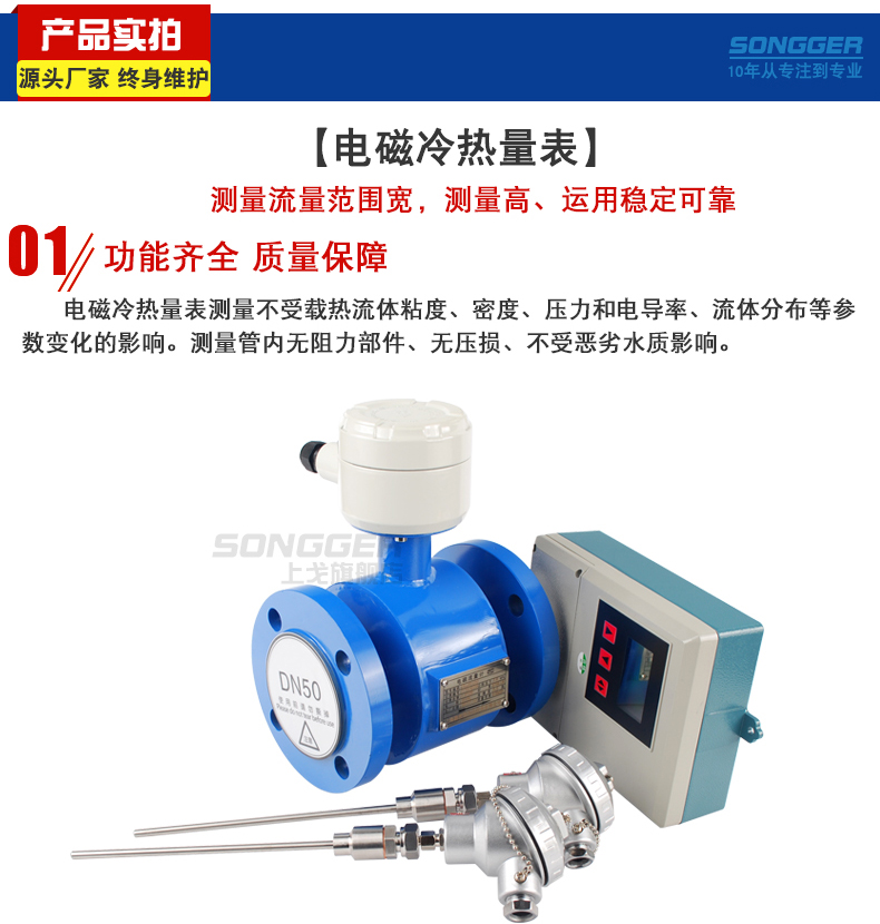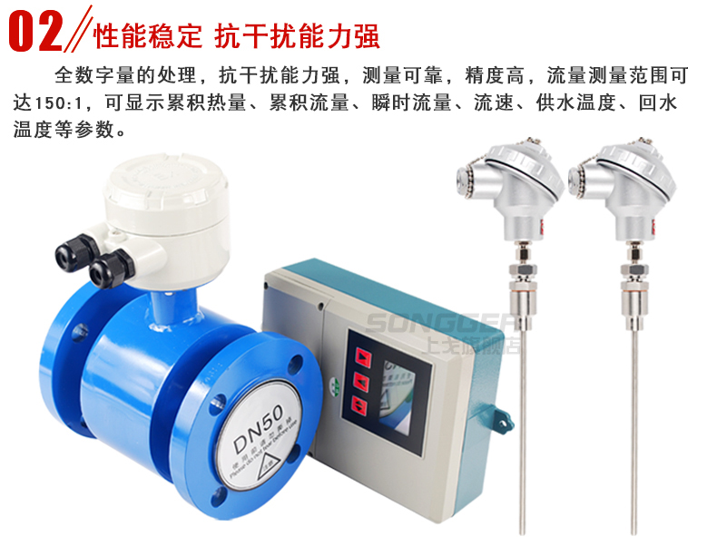 电磁热量表主要是对热交换系统中载能介质(液体水)的供水温度、回水温度及瞬时流量进行实时测量,并按照热力学能量计算公式,对系统消耗的冷量或热量值进行计算并保存的装置。其中电磁式流量传感器是通过法拉第电磁感应定律,将瞬时流量信号线性的变化为感应电动势这一电信号,从而得到瞬时流量信号。计算器将流量信号与温度传感器采集的温度信号进行积算,得出我们需要的能量值。