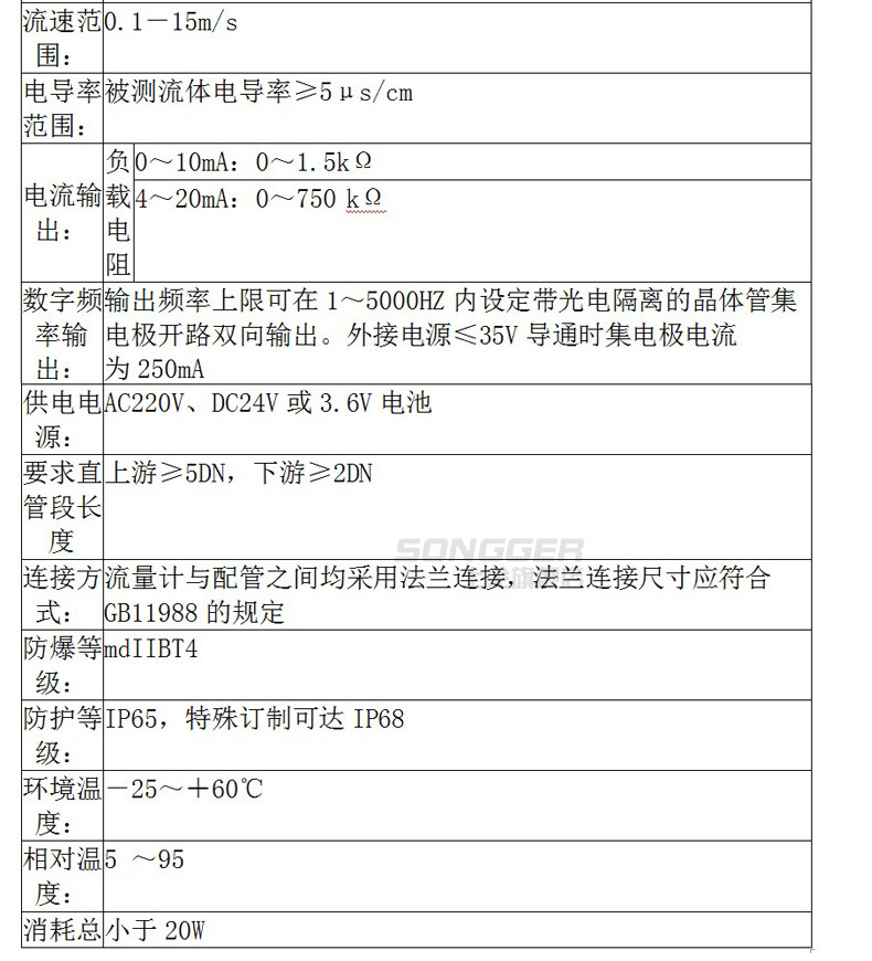 电磁流量计是根据法拉第电磁感应定律进行流量测量的流量计。电磁流量计的优点是压损极小,可测流量范围大。量程比的比值一般为20:1以上,适用的工业管径范围宽,口径可达3m,输出信号和被测流量成线性,精度较高,可测量电导率≥5μs/cm的酸、碱、盐溶液、水、污水、腐蚀性液体以及泥浆、矿浆、纸浆等的流体流量。
