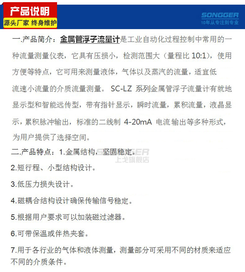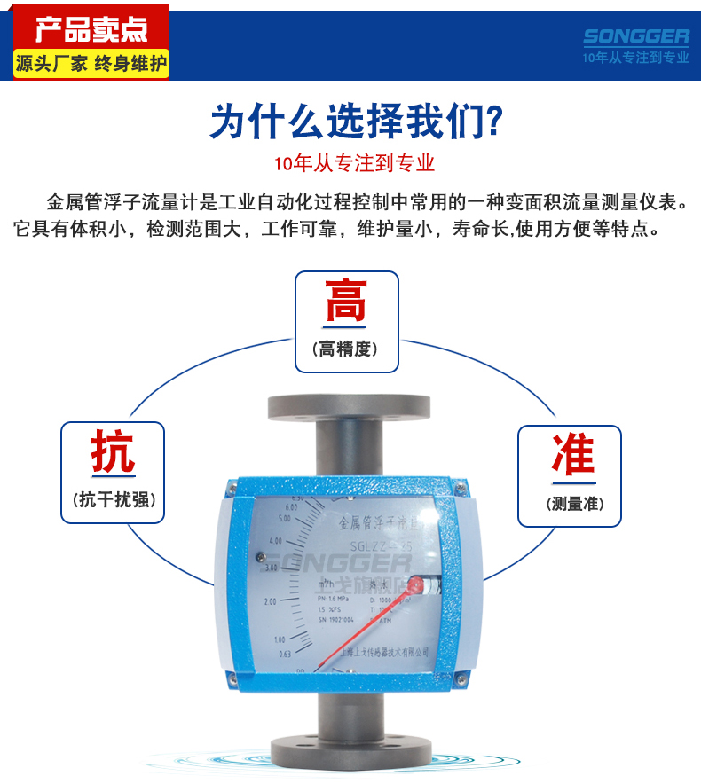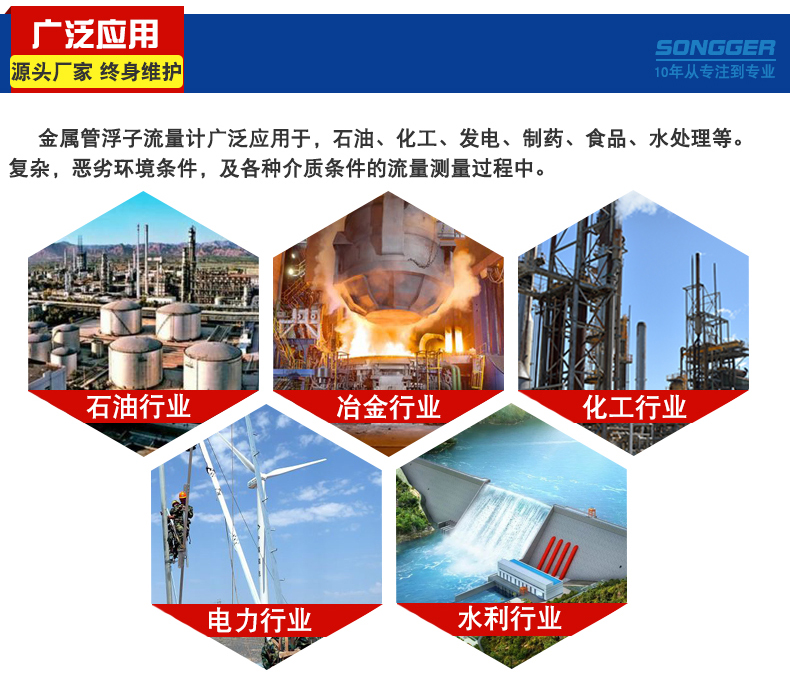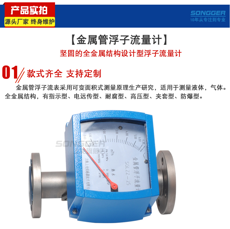 金属管浮子流量计是工业自动化过程控制中常用的一种流量测量仪表,它具有压损小,检测范围大(量程比10:1),使用方便等特点,它可用来测量液体,气体以及蒸汽的流量,多年来金属管浮子流量计的各种优良性能和可靠性,以及较好的性能价格比广泛受到了石化、钢铁、电力、冶金、轻工等行业的青睐.