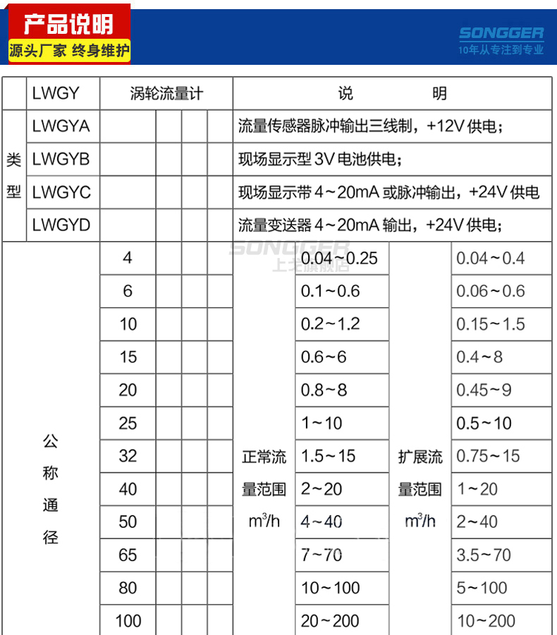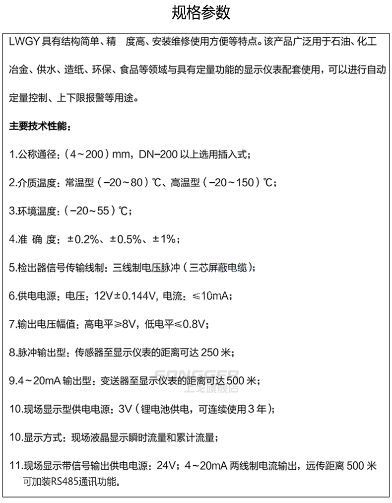 LWGYB型涡轮流量传感器是一种精密流量测量仪表,与相应的流量积算仪表配套可用于测量液体的流量和总量。