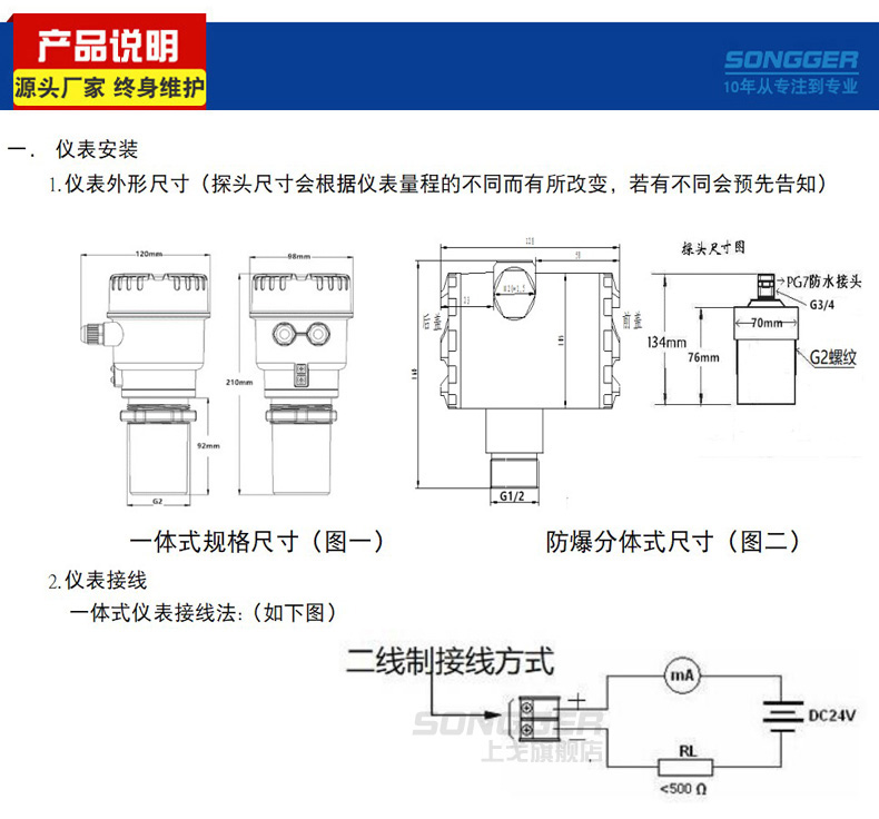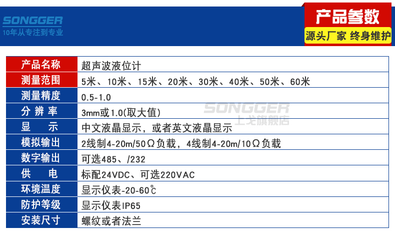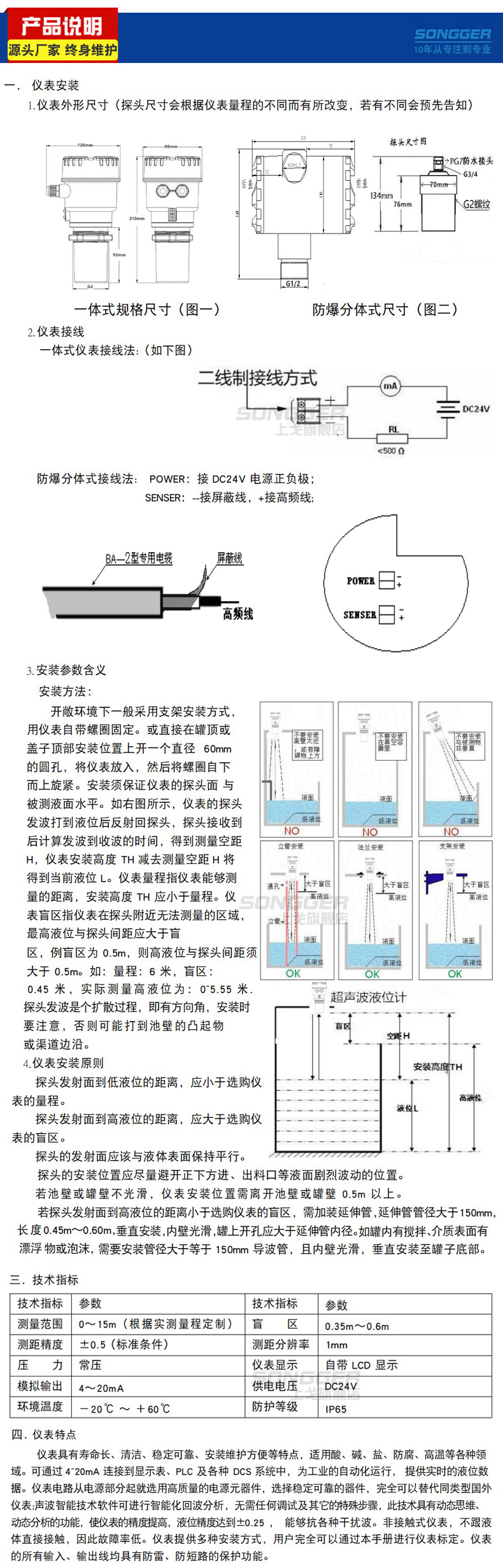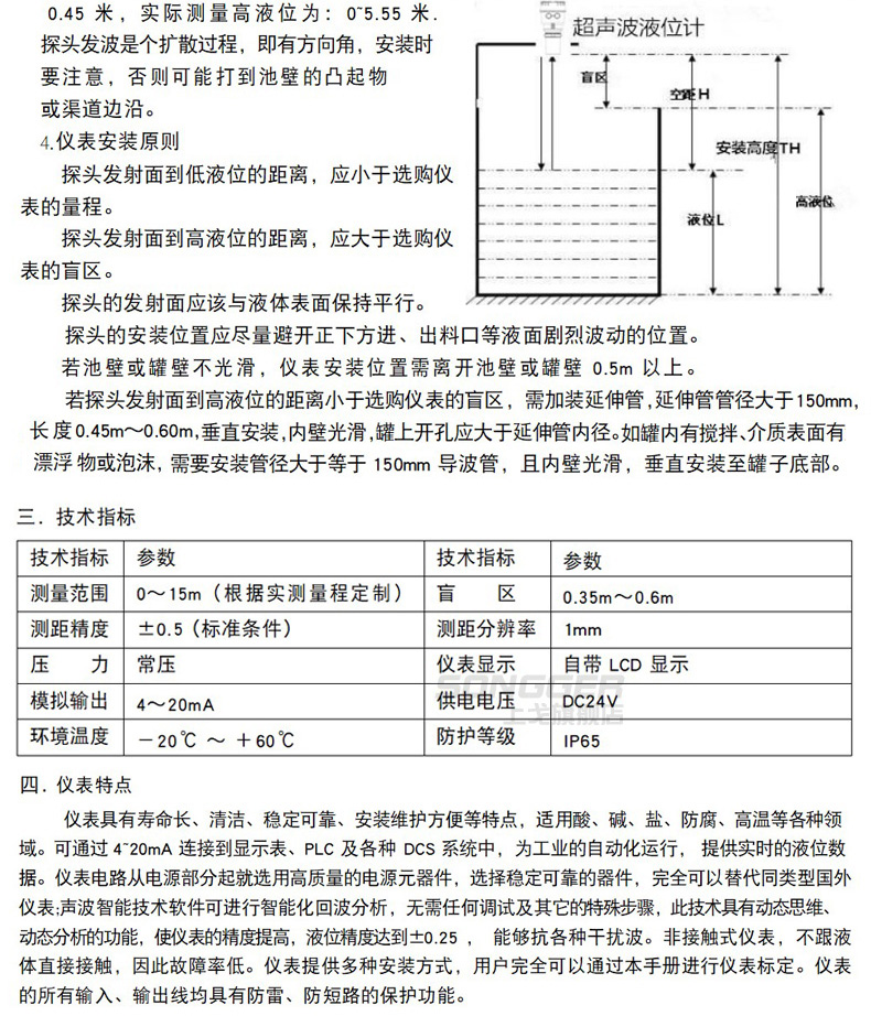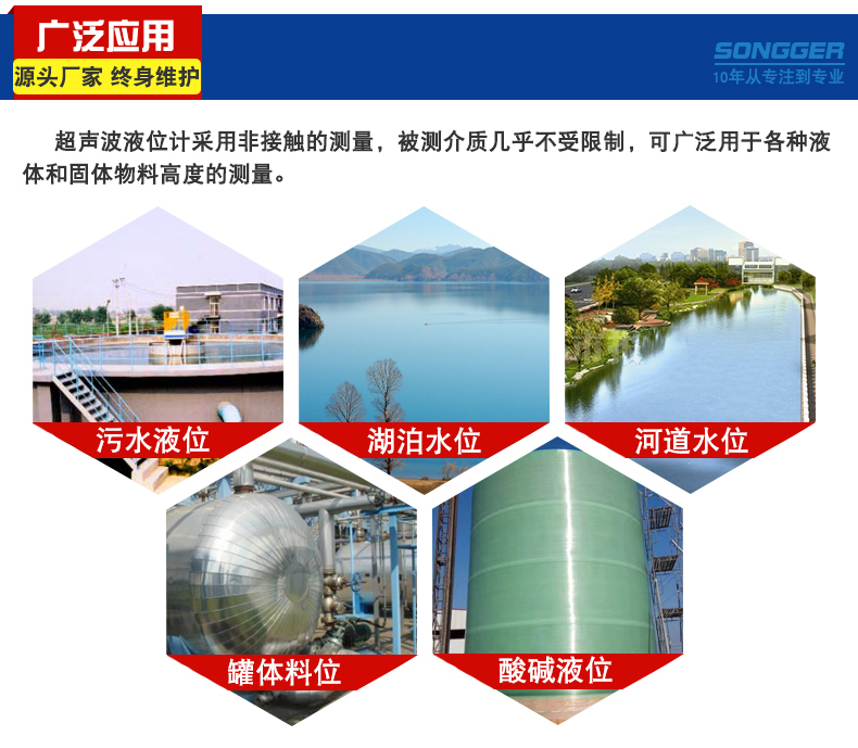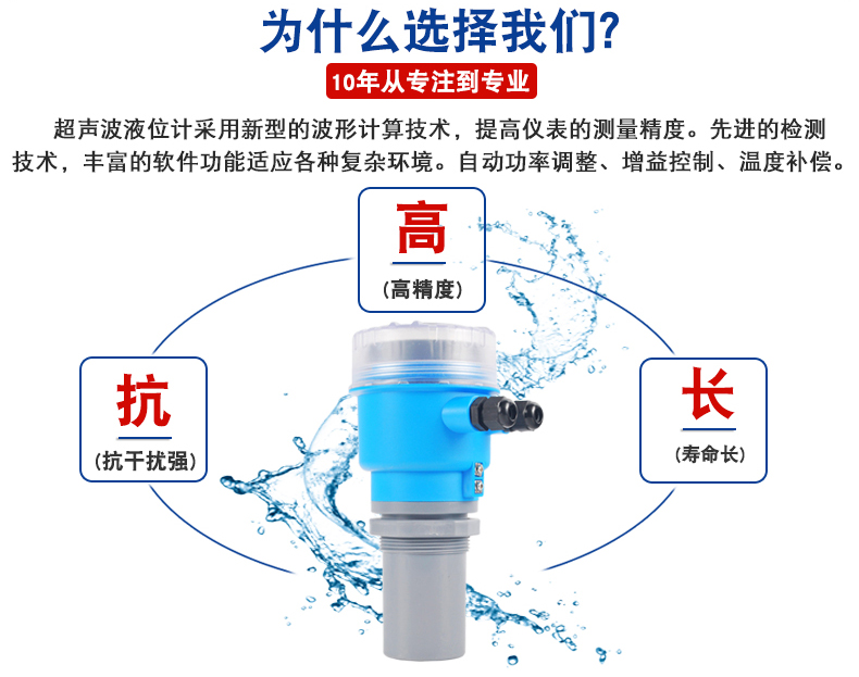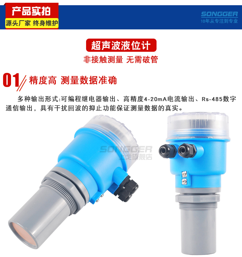 超声波物位(料位,液位)计,是一种非接触式、高可靠性、高性价比、易安装维护的物位测量仪器。它不必接触介质就能满足大部分物位测量要求,它是我们公司经过多年努力开发,拥有自主产权的新一代超声波物位仪。