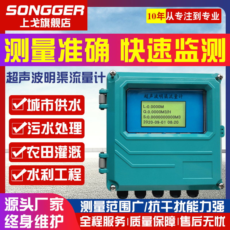超声波明渠流量计是用于测量企业自流管(渠)道污水排放计量的新型流量仪表,简称“污水流量计”。它广泛用于石油、化工、纺织、制药行业的污水排放计量,是城市污染防治和环保部门监控污水排放的必要仪表之一,也是水利部门农灌水排放计量的必备仪表。   该流量计采用水力测流、超声波测位、微电脑处理、数字显示等技术,能在较恶劣的环境下安装、自动计量,具有较高的可靠性和较强的抗干能力。安装维护方便,读数简捷。 【详情】