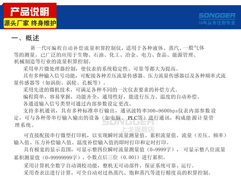 流量积算控制仪针对现场温度、压力、流量等各种信号进行采集、显示、控制、远传、通讯、打印等处理,构成数字采集系统及控制系统,有液晶和数码显示,各种外形尺寸,适用于各种液体,一般气体,过热蒸汽,饱合蒸汽的流量积算测量控制;可对介质进行定量/批量控制(带启动、停止、清零功能),与各种流量传感器或变送器配套使用,能够适应各种测量控制场合。