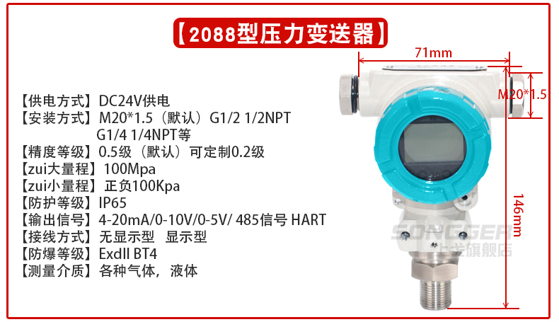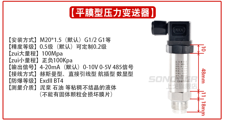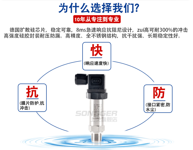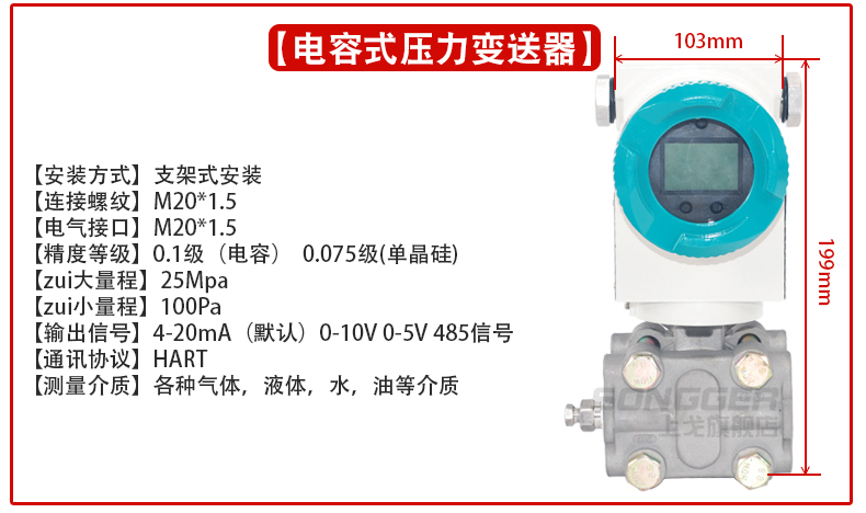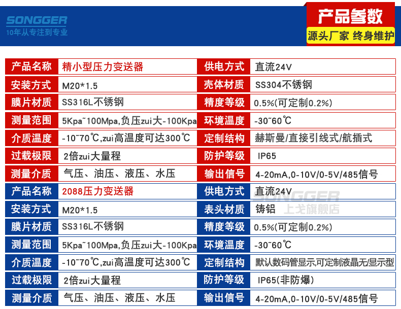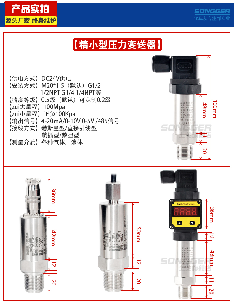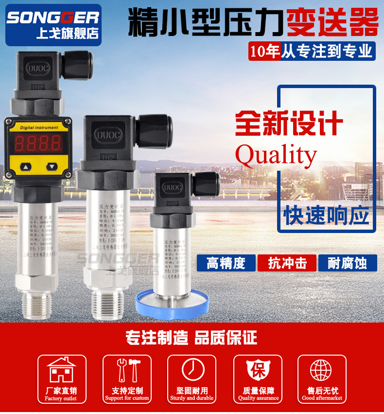 小巧型压力变送器采用高性能的感压芯片,配合先进的电路处理和温度补偿技术,将压力变化转化为线性的电流或电压信号。产品体积小巧,易于安装,采用不锈钢外壳隔离防腐,适于测量与接触部分材质相兼容的气体和液体等介质,它可以用来测量表压、负压和绝压。